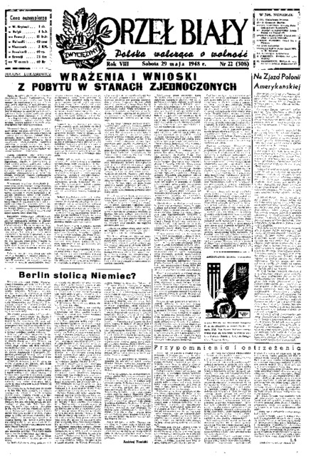 Orzeł Biały : Polska walcząca o wolność, 1948 No. 22 (29 maja)