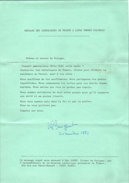 Kolekcja: Archiwa > Francuskie listy do księdza kardynała Józefa Glempa z okresu stanu wojennego > 36-12632-12769