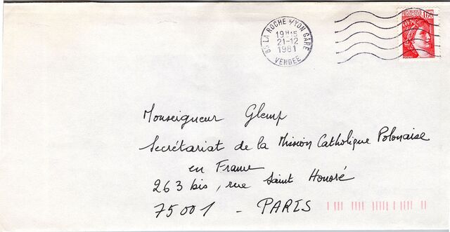 Kolekcja: Archiwa > Francuskie listy do księdza kardynała Józefa Glempa z okresu stanu wojennego > 36-12632-12769