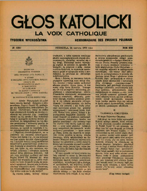 Głos Katolicki = La Voix Catholique. R. 21 : No. 25 (24 czerwca 1979)