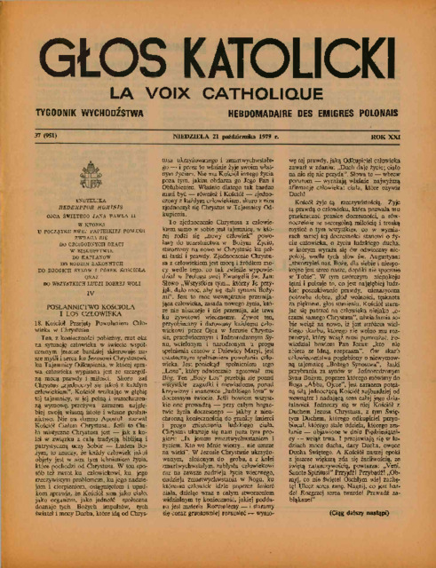 Głos Katolicki = La Voix Catholique. R. 21 : No. 37 (21 października 1979)