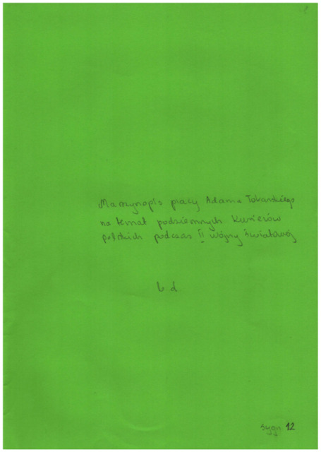 Opis: | Maszynopis pracy Adama Tokarskiego na temat podziemnych polskich kurierów podczas II wojny światowej. |