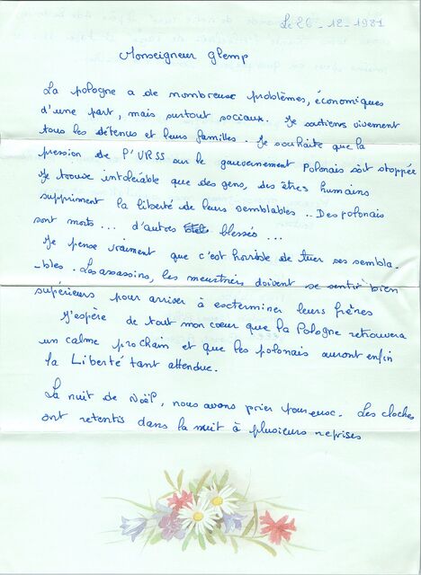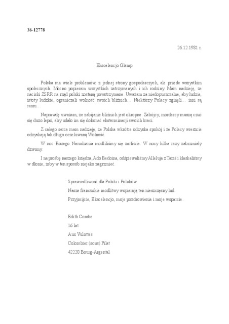Kolekcja: Archiwa > Francuskie listy do księdza kardynała Józefa Glempa z okresu stanu wojennego > 36-12770-12847