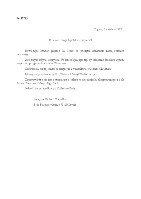 Kolekcja: Archiwa > Francuskie listy do księdza kardynała Józefa Glempa z okresu stanu wojennego > 36-12770-12847