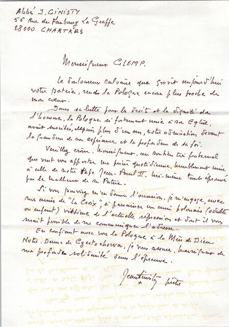 Kolekcja: Archiwa > Francuskie listy do księdza kardynała Józefa Glempa z okresu stanu wojennego > 36-12770-12847