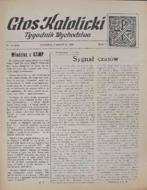 Głos Katolicki. R. 10 : No. 14 (7 kwietnia 1968)