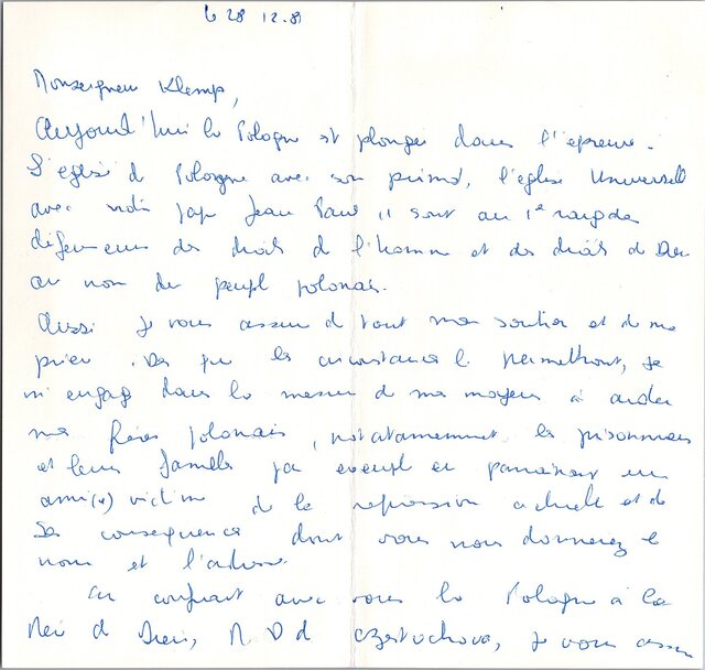 Kolekcja: Archiwa > Francuskie listy do księdza kardynała Józefa Glempa z okresu stanu wojennego > 36-12848-12907