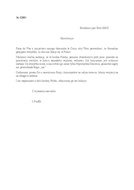 Kolekcja: Archiwa > Francuskie listy do księdza kardynała Józefa Glempa z okresu stanu wojennego > 36-12848-12907