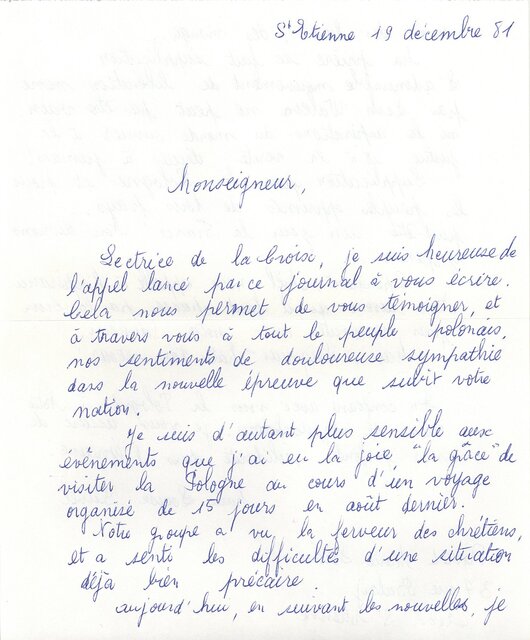 Kolekcja: | Archiwa > Francuskie listy do księdza kardynała Józefa Glempa z okresu stanu wojennego > 36-12908-12989 |