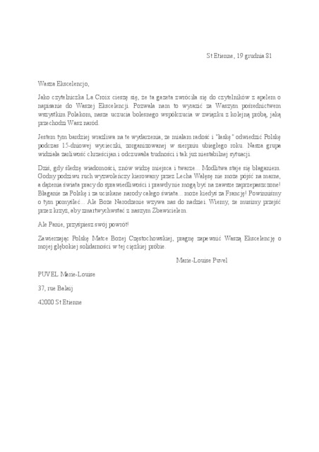 Kolekcja: | Archiwa > Francuskie listy do księdza kardynała Józefa Glempa z okresu stanu wojennego > 36-12908-12989 |