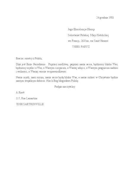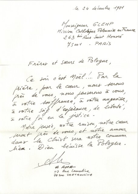 Kolekcja: | Archiwa > Francuskie listy do księdza kardynała Józefa Glempa z okresu stanu wojennego > 36-12908-12989 |