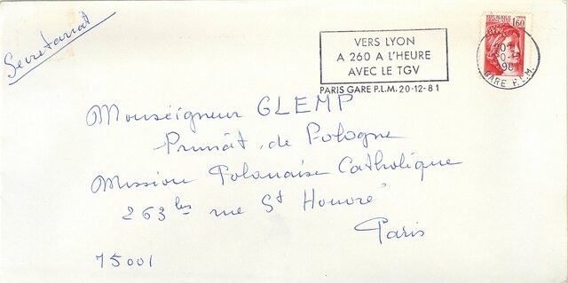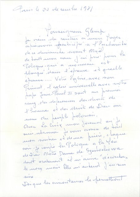 Kolekcja: | Archiwa > Francuskie listy do księdza kardynała Józefa Glempa z okresu stanu wojennego > 36-12908-12989 |