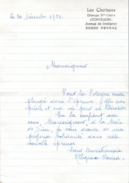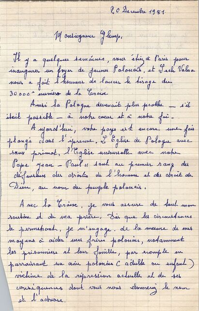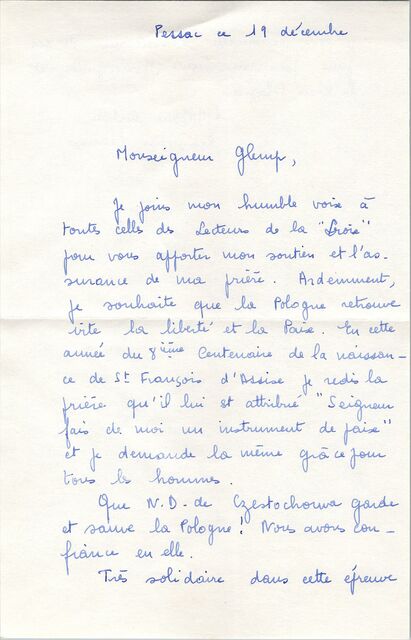 Kolekcja: | Archiwa > Francuskie listy do księdza kardynała Józefa Glempa z okresu stanu wojennego > 36-12995-13032 |