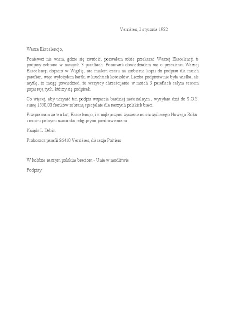 Kolekcja: Archiwa > Francuskie listy do księdza kardynała Józefa Glempa z okresu stanu wojennego > 36-13033-13082