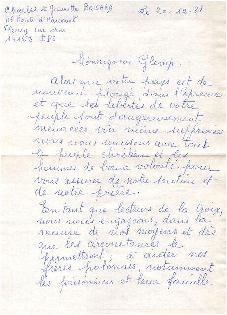 Kolekcja: | Archiwa > Francuskie listy do księdza kardynała Józefa Glempa z okresu stanu wojennego > 36-9152-9274 |