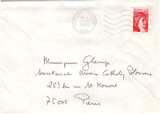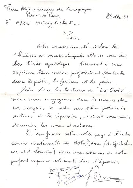 Kolekcja: Archiwa > Francuskie listy do księdza kardynała Józefa Glempa z okresu stanu wojennego > 36-9152-9274