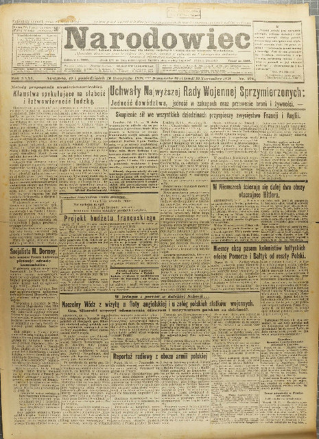 Narodowiec. R. 31: No. 272 (19 i 20 listopada 1939)