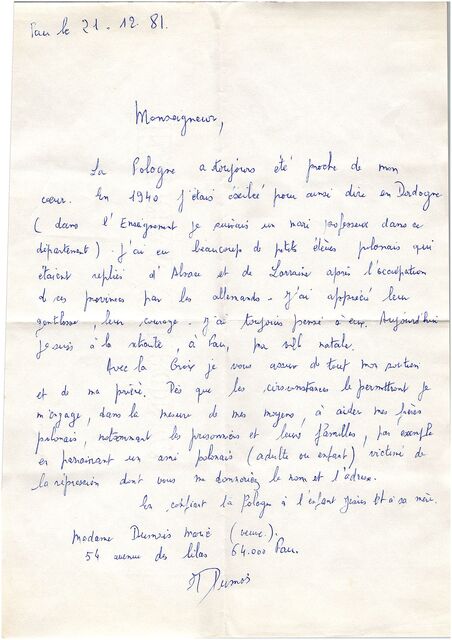 Kolekcja: Archiwa > Francuskie listy do księdza kardynała Józefa Glempa z okresu stanu wojennego > 36-9031-9151
