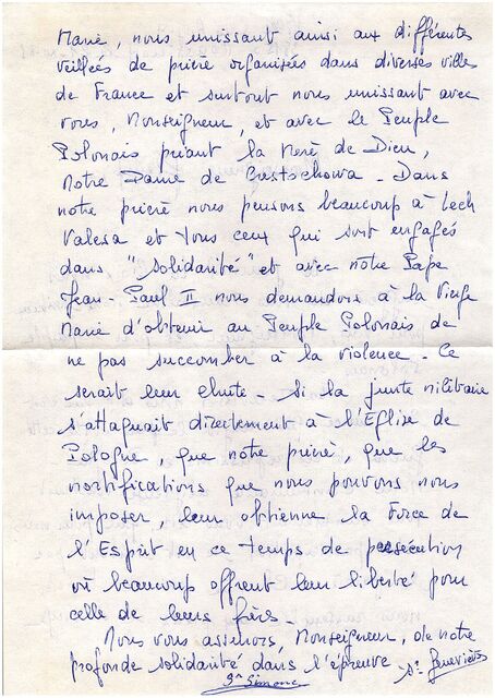 Kolekcja: Archiwa > Francuskie listy do księdza kardynała Józefa Glempa z okresu stanu wojennego > 36-9031-9151