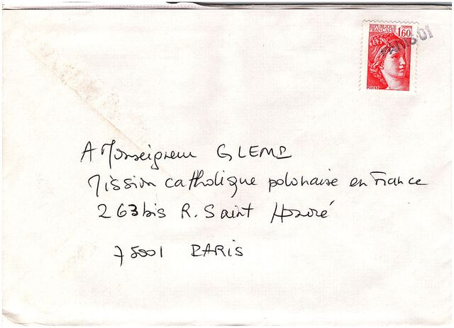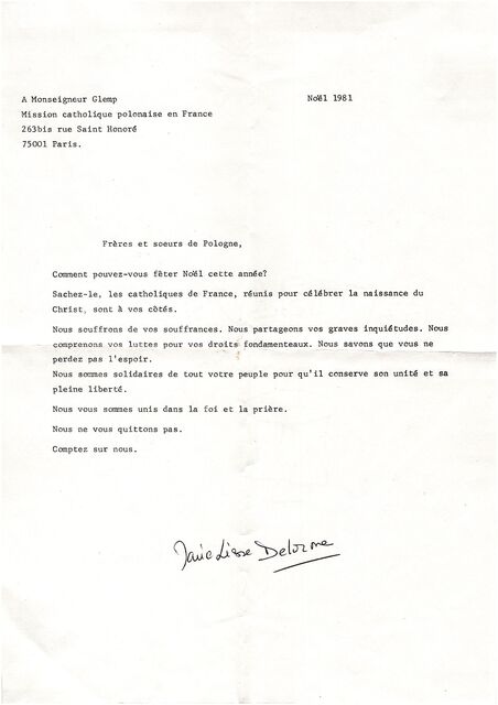 Kolekcja: Archiwa > Francuskie listy do księdza kardynała Józefa Glempa z okresu stanu wojennego > 36-9031-9151