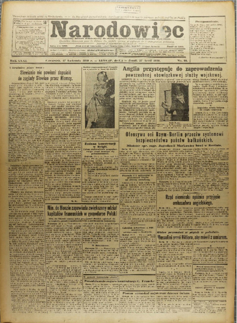 Narodowiec. R. 31: 'No. 99 (27 kwietnia 1939)
