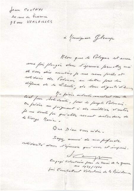 Kolekcja: Archiwa > Francuskie listy do księdza kardynała Józefa Glempa z okresu stanu wojennego > 36-8904-9030