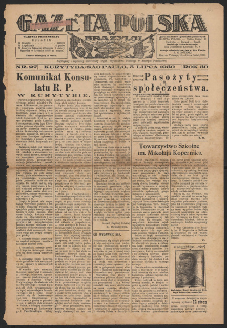 Kolekcja: Prasa > Gazeta Polska w Brazylii > 1930