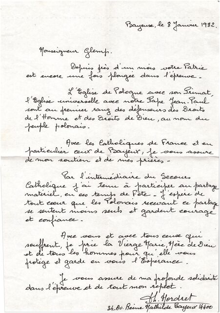 Kolekcja: Archiwa > Francuskie listy do księdza kardynała Józefa Glempa z okresu stanu wojennego > 36-8773-8903