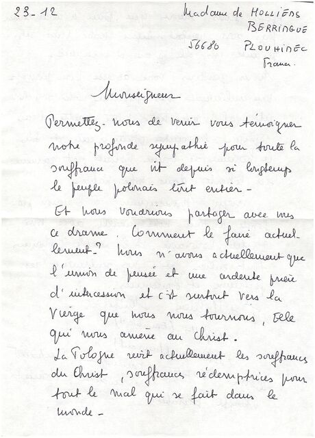 Kolekcja: Archiwa > Francuskie listy do księdza kardynała Józefa Glempa z okresu stanu wojennego > 36-8773-8903