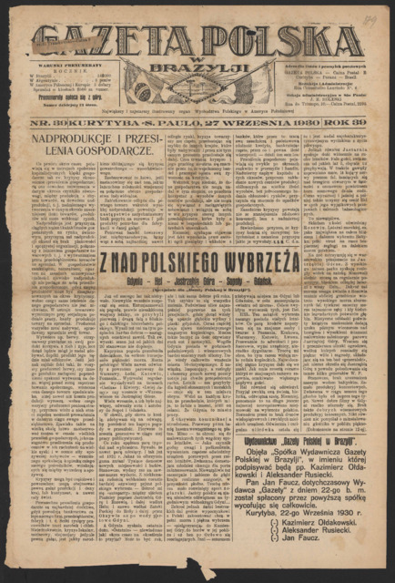 Kolekcja: Prasa > Gazeta Polska w Brazylii > 1930