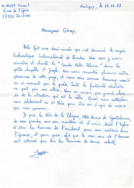 Kolekcja: Archiwa > Francuskie listy do księdza kardynała Józefa Glempa z okresu stanu wojennego > 36-8773-8903
