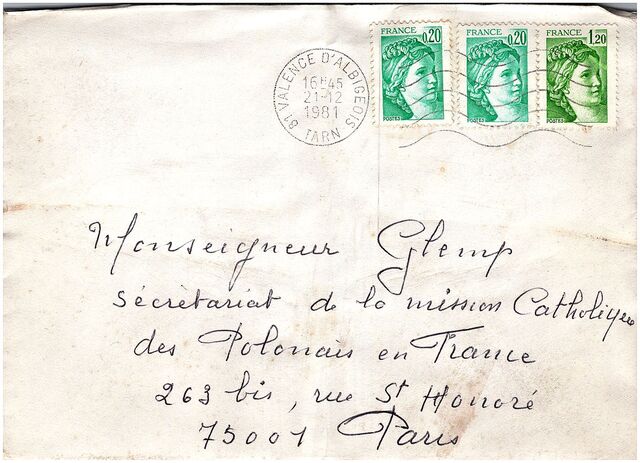 Kolekcja: Archiwa > Francuskie listy do księdza kardynała Józefa Glempa z okresu stanu wojennego > 36-8641-8772