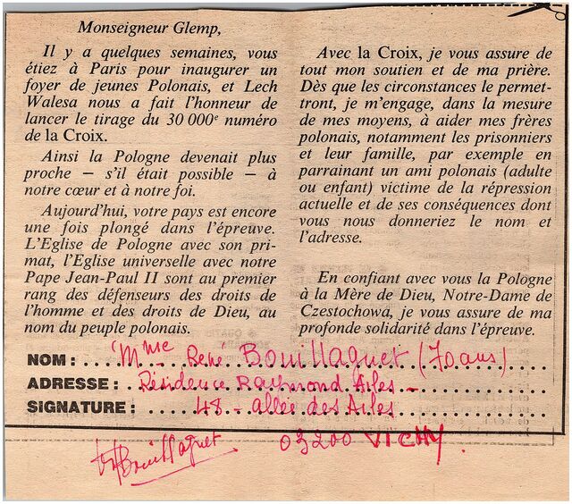 Kolekcja: Archiwa > Francuskie listy do księdza kardynała Józefa Glempa z okresu stanu wojennego > 36-8641-8772