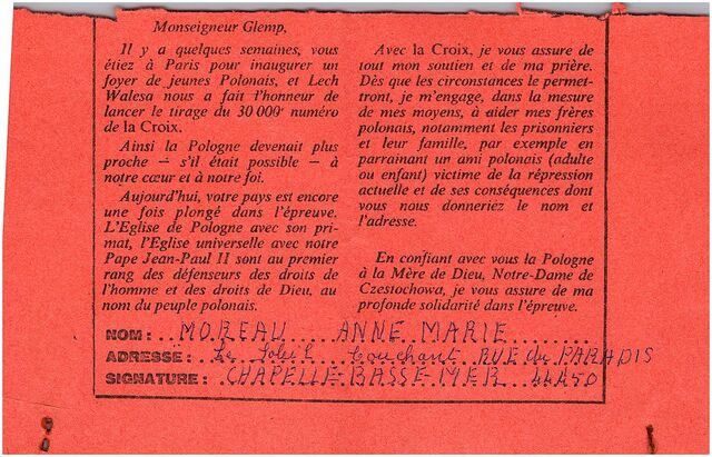 Kolekcja: Archiwa > Francuskie listy do księdza kardynała Józefa Glempa z okresu stanu wojennego > 36-8641-8772
