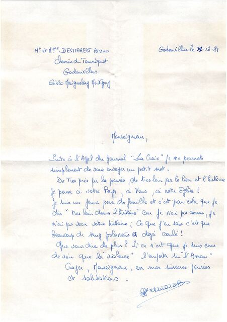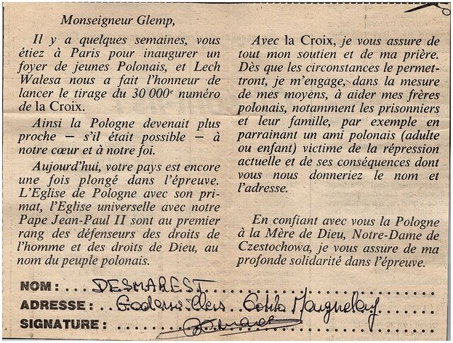 Kolekcja: | Archiwa > Francuskie listy do księdza kardynała Józefa Glempa z okresu stanu wojennego > 36-8520-8640 |