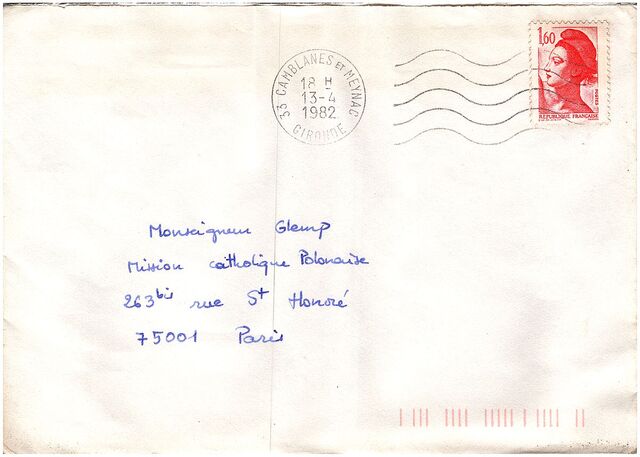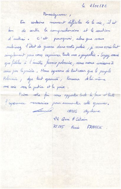 Kolekcja: | Archiwa > Francuskie listy do księdza kardynała Józefa Glempa z okresu stanu wojennego > 36-8520-8640 |