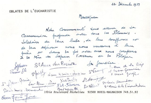 Kolekcja: Archiwa > Francuskie listy do księdza kardynała Józefa Glempa z okresu stanu wojennego > 36-8520-8640