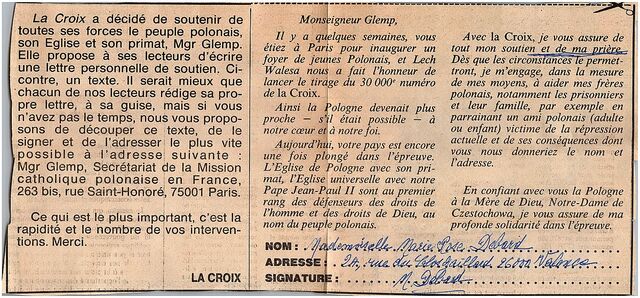 Kolekcja: | Archiwa > Francuskie listy do księdza kardynała Józefa Glempa z okresu stanu wojennego > 36-8520-8640 |