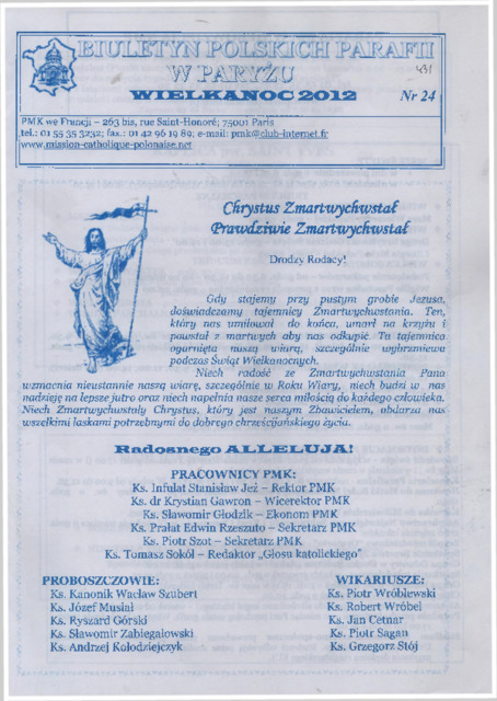 Kolekcja: | Archiwa > Archiwum Polskiej Misji Katolickiej we Francji > Zespół 49. Materiały promocyjne i reklamowe > Biuletyn Polskich Parafii w Paryżu > 2012 Prasa > Biuletyn Polskich Parafii w Paryżu |