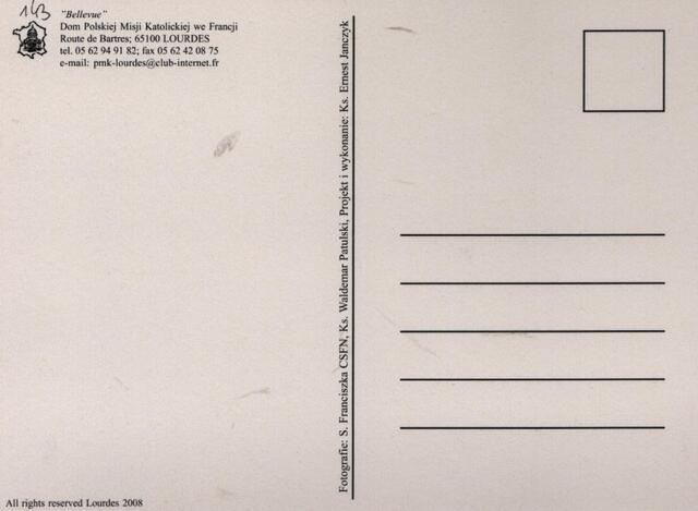 Słowa kluczowe: | Polska Misja Katolicka ; Francja ; Lourdes ; Dom Polski ; Stowarzyszenie Concorde ; "Bellevue" ; Ernest Janczyk ; pocztówka ; widokówka |