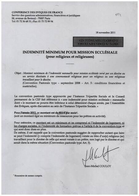 Słowa kluczowe: | Polska Misja Katolicka ; Francja ; Paryż ; Konferencja Episkopatu Francji ; Conference des Eveques de France ; dekret ; wynagrodzenia ; Jean-Michel Coulot |