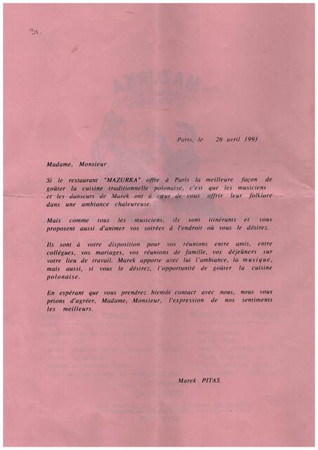 | Słowa kluczowe: | Polska Misja Katolicka ; Francja ; Paryż ; restauracja Mazurka ; Marek Pitas |