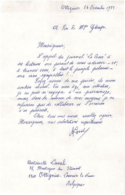 Kolekcja: Archiwa > Francuskie listy do księdza kardynała Józefa Glempa z okresu stanu wojennego > 36-8382-8519