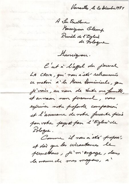 Kolekcja: Archiwa > Francuskie listy do księdza kardynała Józefa Glempa z okresu stanu wojennego > 36-8382-8519