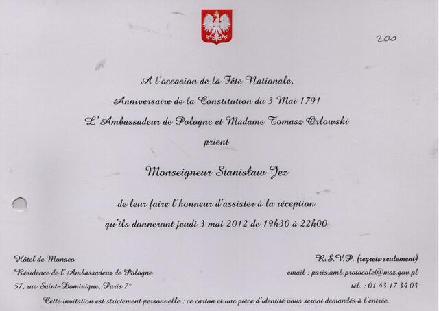 Słowa kluczowe: | Polska Misja Katolicka ; Francja ; Paryż ; Konstytucja 3 Maja ; Tomasz Orłowski ; Stanisław Jeż ; zaproszenie |