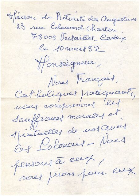 Kolekcja: | Archiwa > Francuskie listy do księdza kardynała Józefa Glempa z okresu stanu wojennego > 36-8277-8381 |