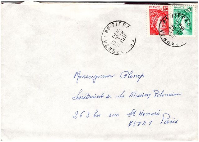 Kolekcja: Archiwa > Francuskie listy do księdza kardynała Józefa Glempa z okresu stanu wojennego > 36-8277-8381