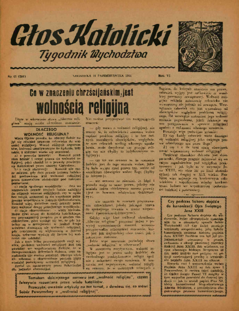 Głos Katolicki. R. 6 : No. 42 (18 października 1964)