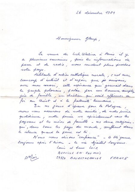 Kolekcja: Archiwa > Francuskie listy do księdza kardynała Józefa Glempa z okresu stanu wojennego > 36-8179-8276