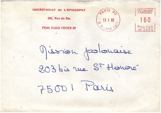 Kolekcja: Archiwa > Francuskie listy do księdza kardynała Józefa Glempa z okresu stanu wojennego > 36-8179-8276